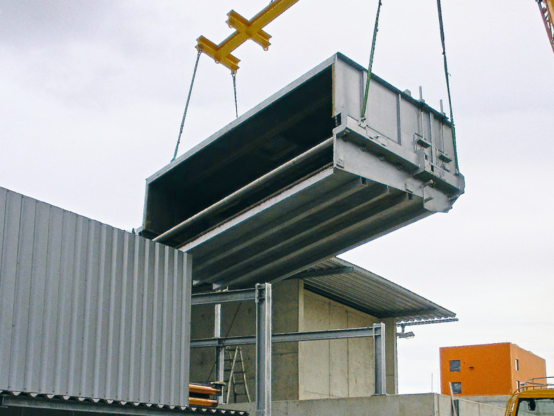 A typical application of the SWISS COMBI KUVO is the drying of wood chips in a drum dryer. The flue gas from the drum dryer is fed into a KUVO to pre-dry wood chips in it, thereby reducing the dust emissions from the drum dryer. In the drum dryer, the pre-dried chips are dried to completion.